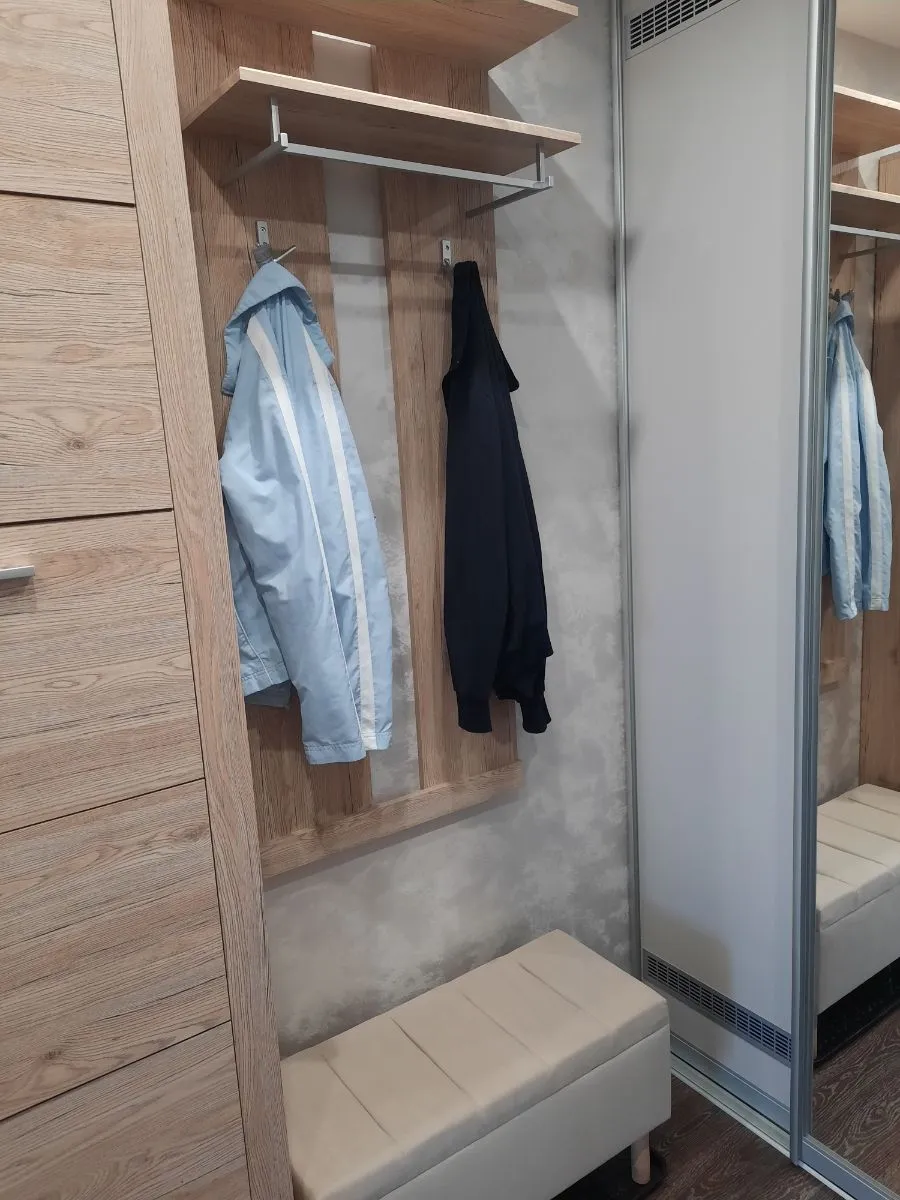 Навесная белорусская вешалка Oskar 60 имеет высоту 141 см. Этого достаточно для размещения здесь длинных пальто и коротких курток, сумок и зонтов. Сама конструкция выдерживает вес до 22 кг. Установленная металлическая фурнитура и проклеенные ПВХ кромкой торцы добавляют ей прочности.