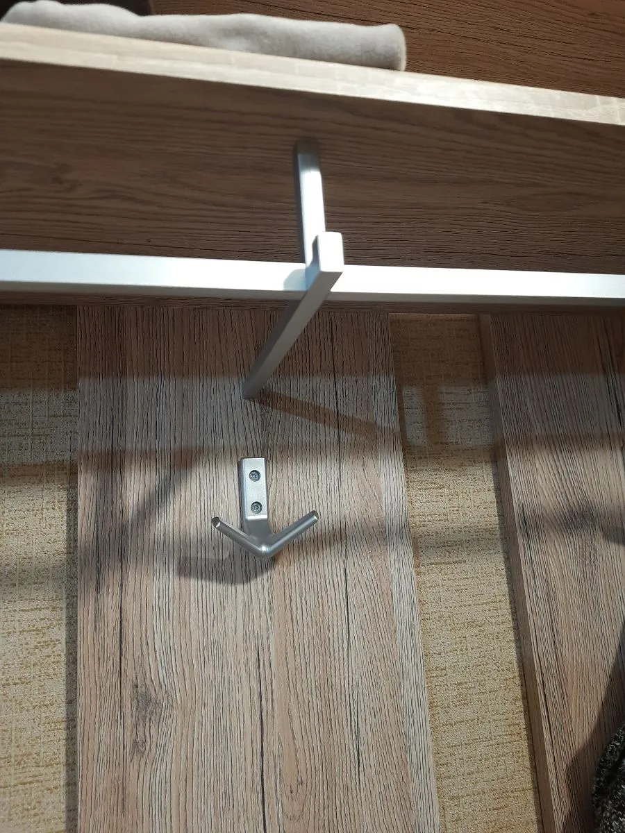 Навесная белорусская вешалка Oskar 90 имеет высоту 141 см. Этого достаточно для размещения здесь длинных пальто и коротких курток, сумок и зонтов. Сама конструкция выдерживает вес до 22 кг. Установленная металлическая фурнитура и проклеенные ПВХ кромкой торцы добавляют ей прочности.