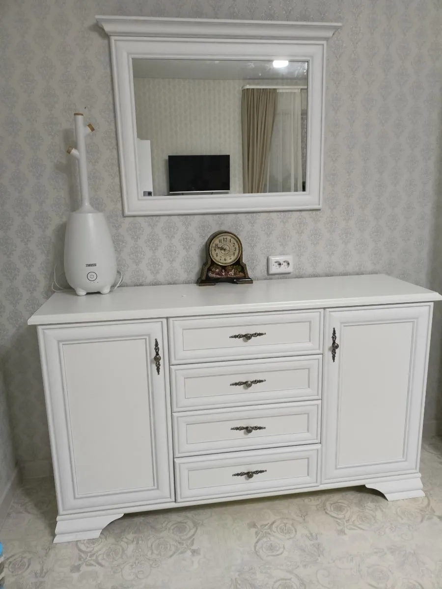 Долго искала, чтоб туалетный столик с зеркалом подошли в мой интерьер. Легкая классика, чистый белый цвет + серебро. За эти деньги всё ок. Если приглядываться и придираться, то смените лезвия у станков, кромка местами закоцана, пришлось подкрашивать.